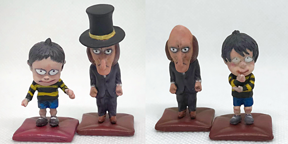 内に秘めた不平を表すべく直立不動の姿勢に固く握りしめたコブシ、顔は隠しきれない不満の表情で表現してみました。千年王国版の角無し・禿頭スタイルですが、シルクハットを被せることで貸本版としても利用できます。